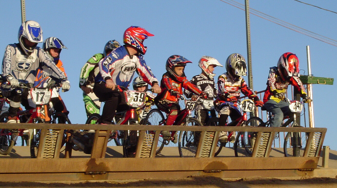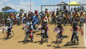 Before you get up on the starting gate, it is suggested that first you closely watch the riders go around the track. Pay attention to their body motion over jumps (using arms and legs as shock absorbers) and note where riders are pedaling and when they are coasting. Take it slow on your first few laps. Remember, you are brand new to this and those fast, expert racers started off just like you. Take time to learn the track - know which obstacles are coming up and how to take it smoothly. Often, the difference in the beginner class is who is smoothest around the course rather than quickest